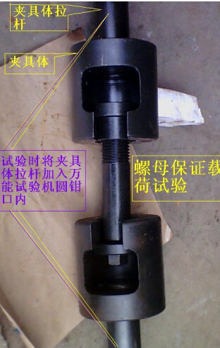 夾具是我公司根據(jù)國家相關(guān)標準GB/T3098.1-2010,選用特殊材料精心設(shè)計加工制作而成,它通過不同方式的組合,可以進行螺栓楔負載試驗和普通拉力試驗、螺栓保證最小拉力荷載試驗、螺母保證荷載試驗。該夾具通過連接拉桿夾持到萬能試驗機的鉗口內(nèi),即可以進行各種拉力試驗,普通液壓萬能試驗機不需添加或更改其它裝置。
